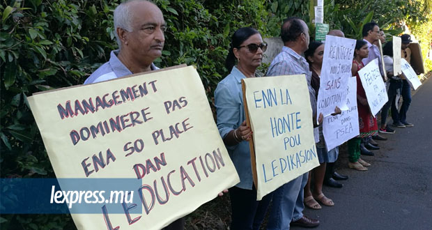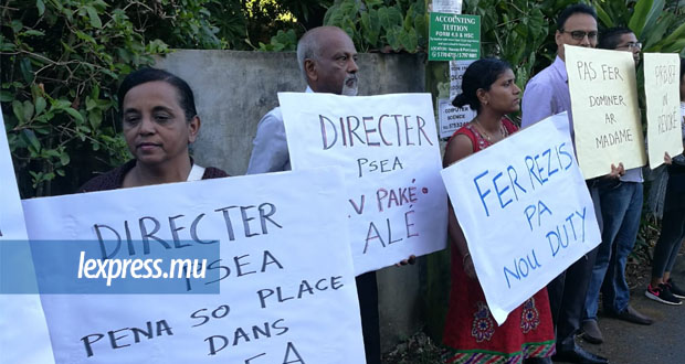 Les manifestants ont fait part de leur mécontentement par rapport à la suspension de trois enseignantes pour avoir refusé de remplir la fiche de présence de leurs élèves. Ils réclament même la démission du directeur de la Private Secondary Education Authority qui, disent-ils, n’a plus sa place au sein de cet organisme.