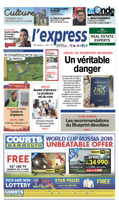 En une, la «vente» du passeport mauricien, un véritable danger. Autre titre: les recommandations du Blueprint sur le global business dévoilées.