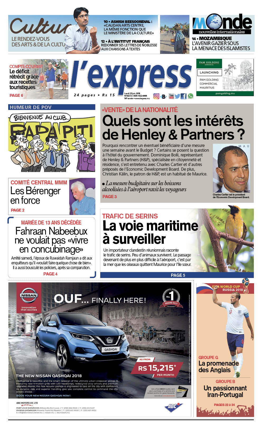 Les grands titres de l’express du lundi 25 juin