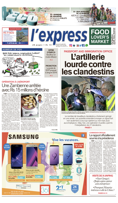 C’est sa première visite à Maurice. Mais cette Zambienne, âgée de 26 ans, a vite été repérée par un policier du service d’immigration à l’aéroport. Elle a été interpellée et 55 boulettes d’héroïne ont été retrouvées en sa possession. Patricia Mhango, employée de maison à Johannesburg, a aussi avoué qu’elle transportait de la drogue dans son estomac. Au total, la drogue saisie s’élève à 936,36 grammes, d’une valeur marchande de Rs 15 millions.