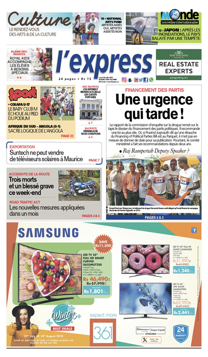 Le rapport de la commission d’enquête sur la drogue remet sur le tapis le dossier du financement des partis politiques. Il recommande une loi au plus vite. Or, si Pravind Jugnauth dit qu‘une ébauche du Financing of Political Parties Bill est au Parquet, il n‘est pas en mesure de donner de date pour sa publication. Pourtant, le comité ministériel a fait ses recommandations depuis deux ans.