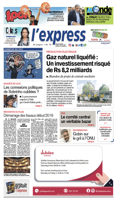 Le gouvernement n’ira pas de l’avant avec l’énergie nucléaire, jugée non viable. Le projet de loi traitant de ce sujet, qui sera présenté au Cabinet en septembre, ne la prévoit pas. Il n’en sera pas de même de la Combined Cycle Gas Turbine. Pourtant, l‘utilisation du gaz naturel liquéfié, qui fera tourner cette centrale, n’est pas financièrement justifiable. L’aménagement du port pour l’importer nécessitera, en plus, Rs 20 milliards.