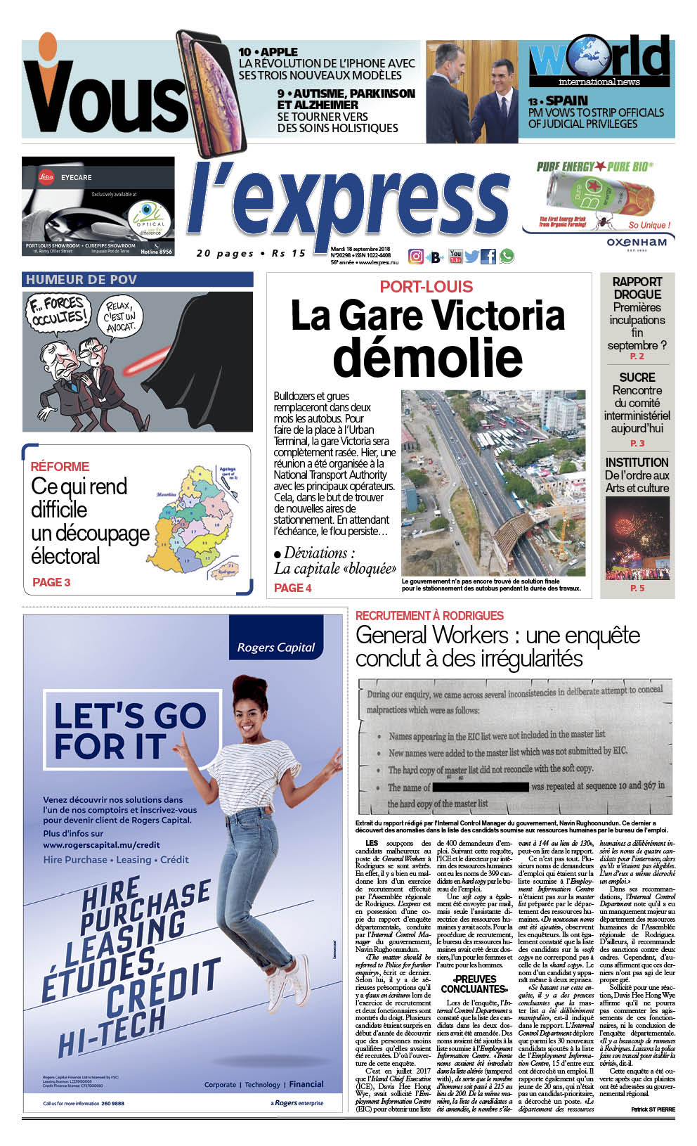 LES soupçons des candidats malheureux au poste de General Workers à Rodrigues se sont avérés. En effet, il y a bien eu maldonne lors d’un exercice de recrutement effectué par l’Assemblée régionale de Rodrigues. L’express est en possession d’une copie du rapport d’enquête départementale, conduite par l’Internal Control Manager du gouvernement, Navin Rughoonundun. «The matter should be referred to Police for further enquiry», écrit ce dernier. Selon lui, il y a de sérieuses présomptions qu’il y a «faux en écriture» lors de l’exercice de recrutement et deux fonctionnaires sont montrés du doigt. Plusieurs candidats étaient surpris en début d’année de découvrir que des personnes moins qualifiées qu’elles avaient été recrutées. D’où l’ouverture de cette enquête.