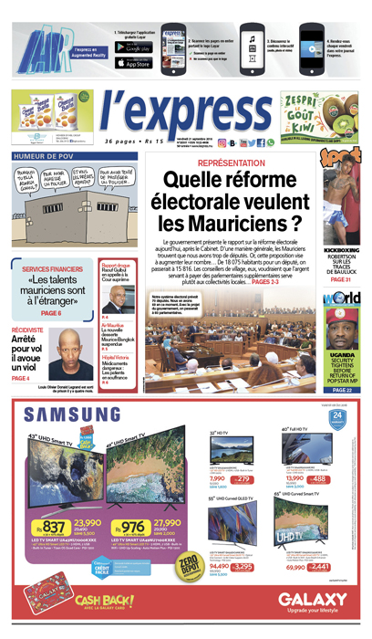 En une : Représentation – Quelle réforme électorale veulent les Mauriciens ? ; Services financiers – Les talents mauriciens sont à l’étranger ; Commission drogue – Raouf Gulbul en appelle à la Cour suprême
