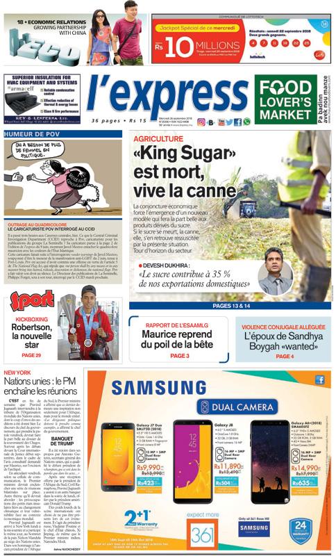 En une, la conjoncture économique force l’émergence d’un nouveau modèle qui fera la part belle aux produits dérivés du sucre. Autres titres: le caricaturiste Pov interrogé au CCID et le PM enchaîne les réunions en vue des auditions aux Nations unies.