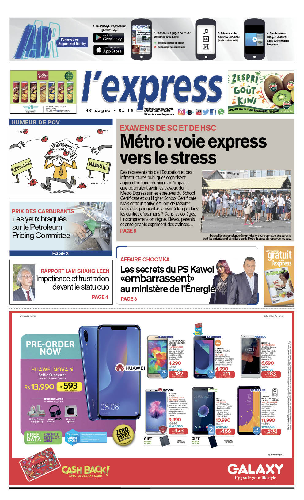 En une, examens de SC et de HSC deviennent une voie express vers le stress avec les travaux du métro. Autre titre : Les secrets du PS Kawol «embarrassent» au ministère de l’Énergie et impatience et frustration devant le statu quo suivant la publication du rapport Lam Shang Leen