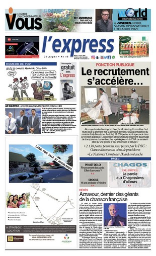 En une, le recrutement s’accélère dans la fonction publique. Autres titres : Un accord Management-- pilotes air mauritius conclu hier et le décès de Charles Aznavour.