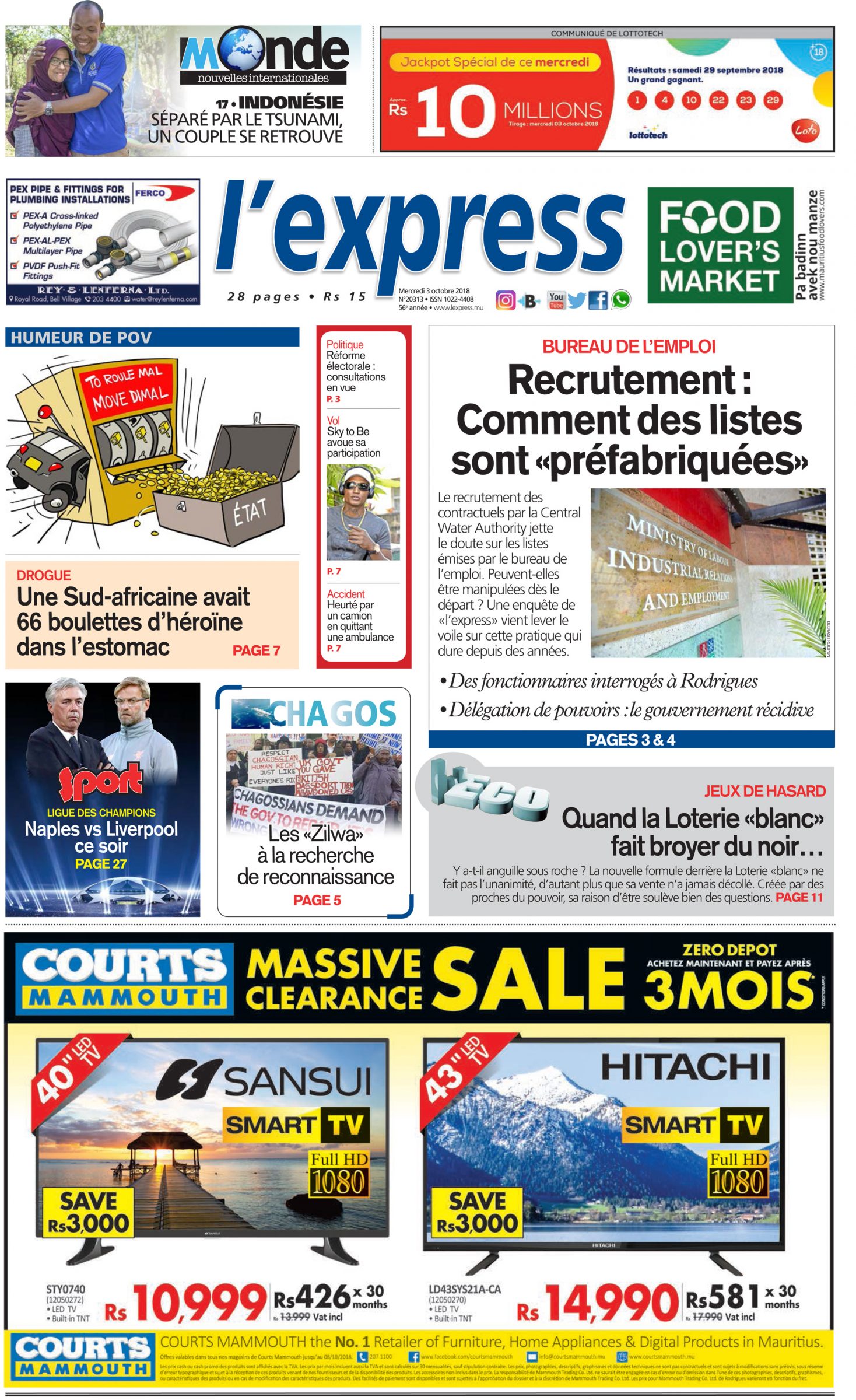 Les grands titres de l’express de ce mercredi 3 octobre
