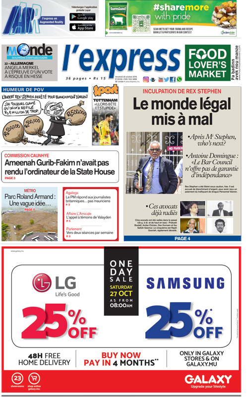 En une, le monde légal mis à mal. Autre titre : commission Caunhye - Ameenah Gurib-Fakim n’avait pas rendu l’ordinateur de la State House.