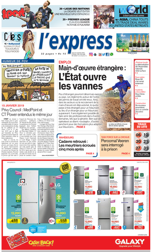 Les grands titres de l’express de ce jeudi 15 novembre