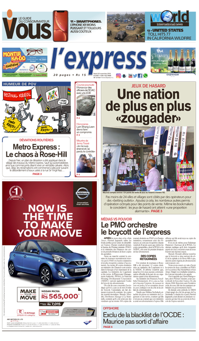 En une, La population de plus en plus «zougader». Autres titres : le PMO orchestre le boycott de l’express et le chaos à Rose-Hill Metro Express avec les travaux de Metro Express.