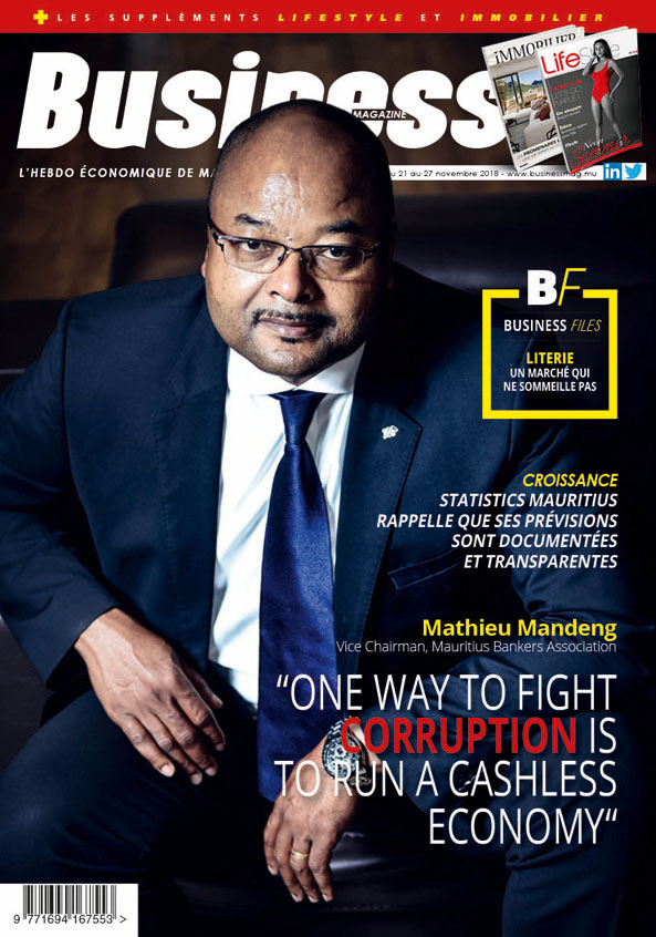 He took on the commitment to answer candidly. Yes, the MBA has been silent on the communication front but things are about to change with the revamping of the association in the interest of the banking industry, states Mathieu Mandeng, the Vice Chairman, Mauritius Bankers Association. Embezzlement and corruption, he points out, are feasible in cash transactions as that there is no easy trace. If you foster electronic payment, you foresee the traceability of transactions and corruption will be reduced. The interview of Mathieu Mandeng features on the cover of Business Magazine this week, an issue accompanied by not one but two supplements: Lifestyle and Immobilier & Construction.