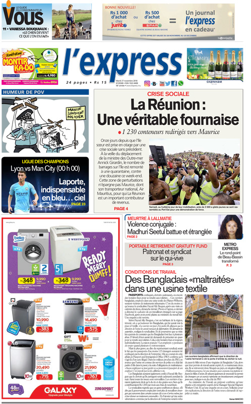 Les grands titres de l’express de ce mardi 27 novembre