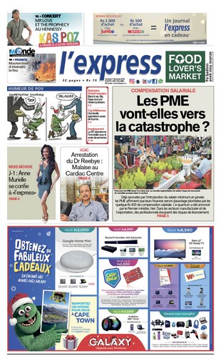 En une : Compensation salariale – Les PME vont-elles vers la catastrophe ? ; ICAC – Arrestation du Dr Reebye : malaise au Cardiac Centre ; Miss Monde – J-1 : Anne Murielle Ravina se confie à «l’express»
