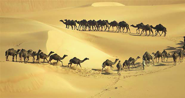 • En photo: le désert de Liwa est l’un des plus beaux du monde. Ses dunes immenses (jusqu’à 300 m de haut !) changent de couleur tout au long de la journée.
