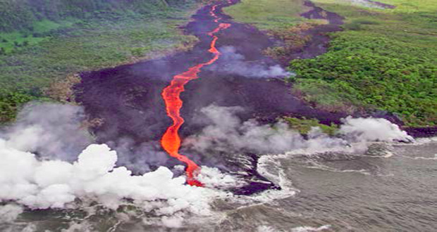 • En photo: le volcan Piton de la Fournaise. Haut de 2 631 mètres, c’est l’un des plus actifs du monde. La région où la lave sort est inhabitée, il n’y a donc pas vde danger.