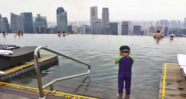 • En photo: cette piscine est la plus haute du monde ! Elle se trouve à 200 mètres du sol, sur le toit d’un hôtel. Elle s’étire sur 150 mètres de long, soit la longueur de 3 bassins olympiques !