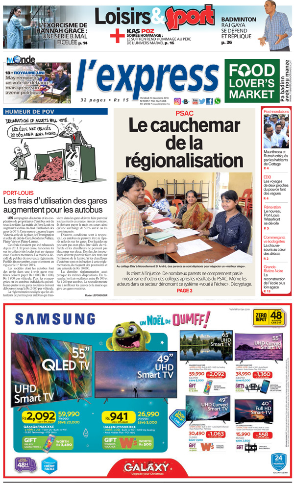 En une: PSAC: De nombreux parents ne comprennent pas le mécanisme d’octroi des collèges après les résultats du PSAC. Autre titre : Les compagnies d’autobus et les coopératives de propriétaires d’autobus ont du souci à se faire.