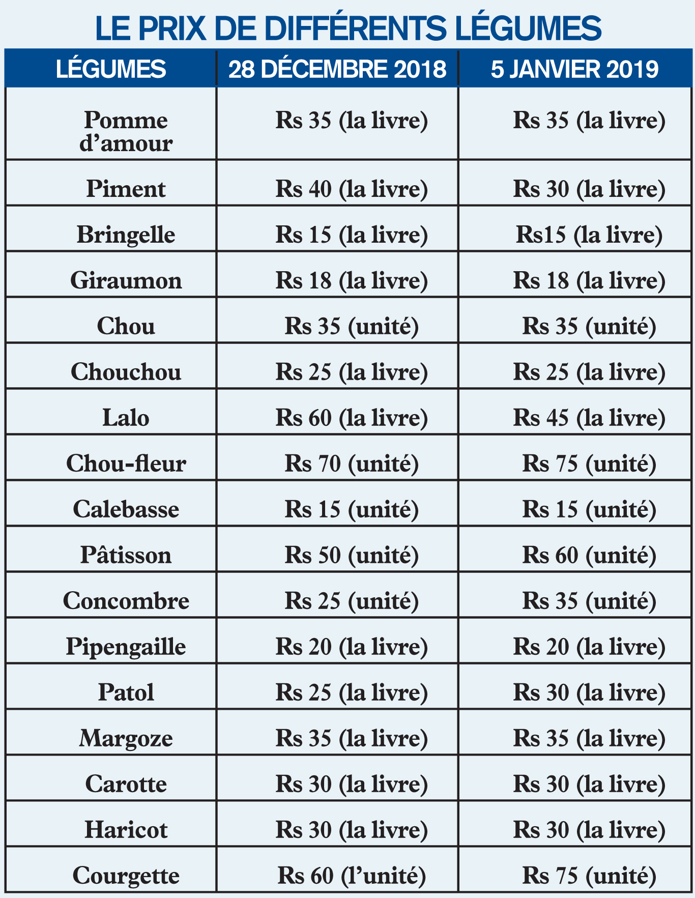 Toutefois, il note que le prix des piments a connu une chute passant de Rs 40 la livre au 28 décembre à Rs 30 la livre depuis samedi. Quant à celui du chou-fleur, il est toujours en hausse. Dans quelques jours, avec le début du jeûne pour la fête de Cavadee, prévue le 21 janvier, les planteurs prévoient une plus grande demande de légumes.