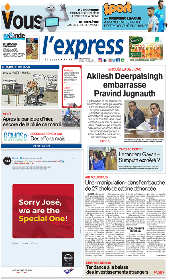 En une - Enquêtes de l’ICAC : Akilesh Deerpalsingh embarrasse Pravind Jugnauth