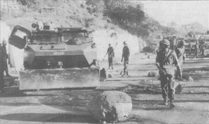 L'accès vers Pointe aux Sables était toujours bloqué ce matin, et la Spécial Mobile Force (SMF) essayait de déblayer la route.