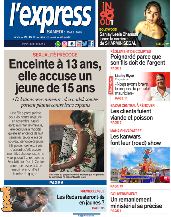 Une fille a porté plainte pour viol contre un jeune, en novembre. Mardi, après avoir fait un malaise, elle découvre à l’hôpital qu’elle est enceinte de huit semaines. Jeudi, elle a de nouveau dénoncé ce jeune à la police. «Je ne suis pas d’accord qu’elle accuse mon fils à chaque fois. Je ne veux pas qu’il se retrouve au Rehabilitation Youth Centre parce que ces deux-là se sont aimés», se désole la mère du garçon.