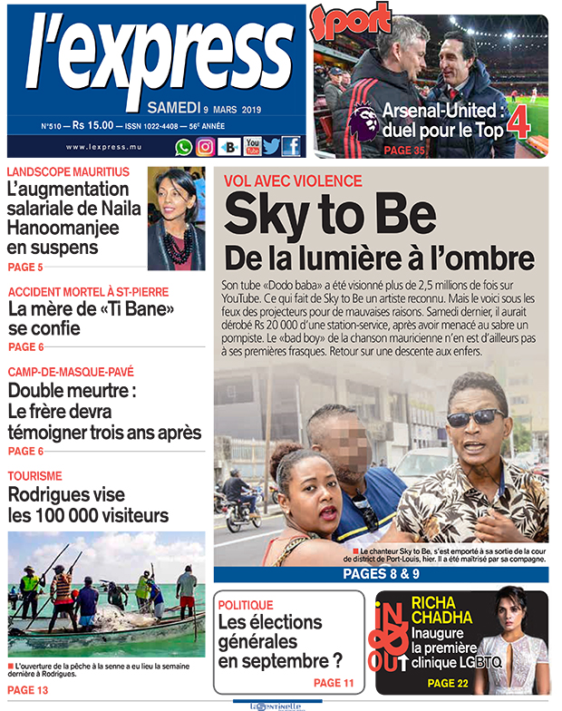 Son tube «Dodo baba» a été visionné plus de 2,5 millions de fois sur YouTube. Ce qui fait de Sky to Be un artiste reconnu. Mais le voici sous les feux des projecteurs pour de mauvaises raisons. Samedi dernier, il aurait dérobé Rs 20 000 d’une station-service, après avoir menacé au sabre un pompiste. Le «bad boy» de la chanson mauricienne n’en est d’ailleurs pas à ses premières frasques. Retour sur une descente aux enfers.