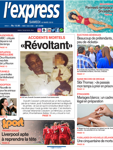 En une : Accidents mortels – «Révoltant !» - Élections générales – Beaucoup de prétendants, peu de «tickets» Étrangers – Mariages blancs : un cadre légal en préparation