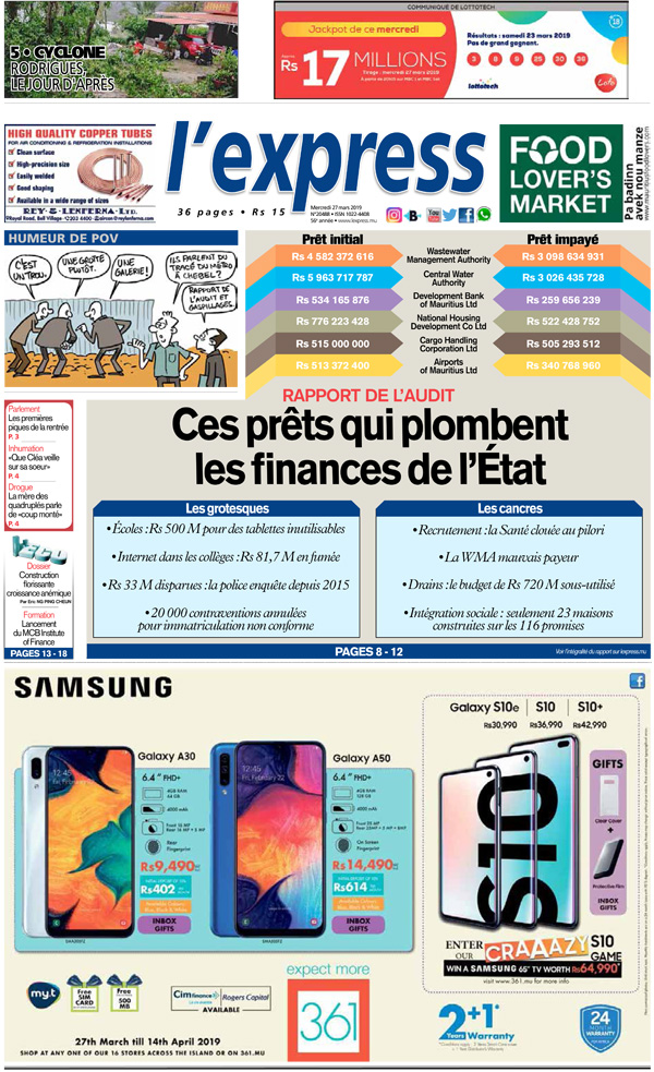 Voici les grands titres de l'express de ce mercredi 27 mars 2019