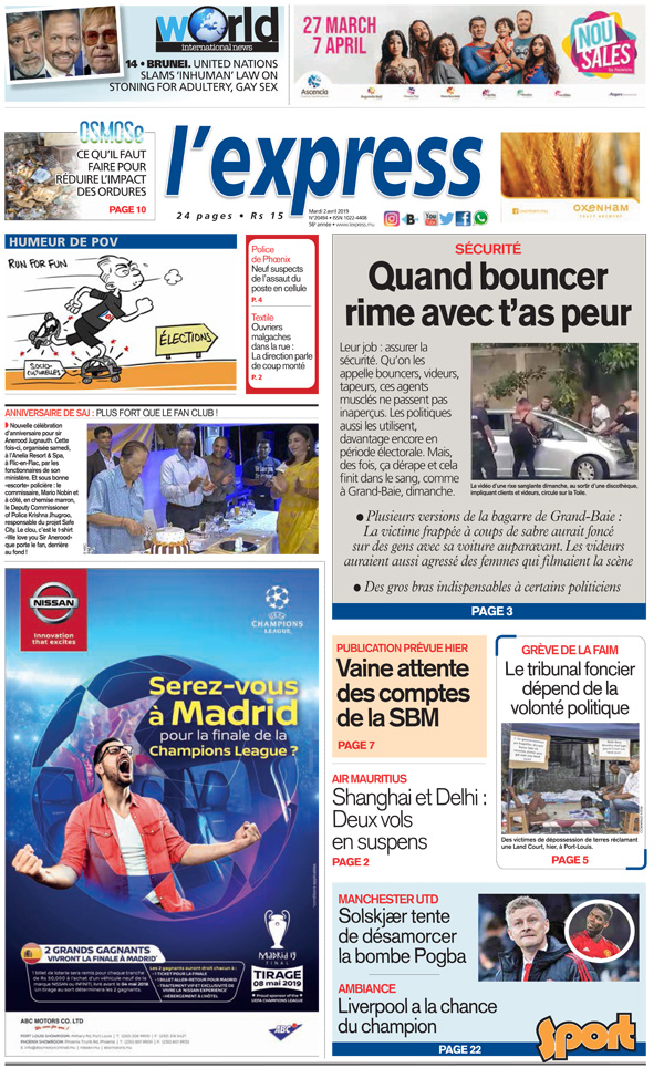 - Plusieurs versions de la bagarre de Grand-Baie : La victime frappée à coups de sabre aurait foncé sur des gens avec sa voiture auparavant. Les videurs auraient aussi agressé des femmes qui filmaient la scène