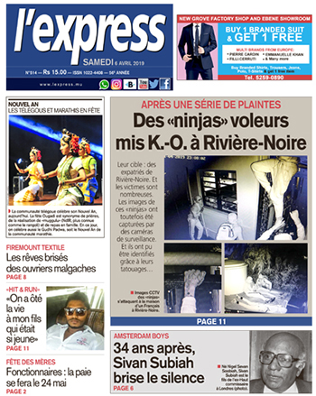 En une : Après une série de plaintes – Des «ninjas» voleurs mis K.O. à Rivière-Noire ; Amsterdam Boys – 34 ans après, Sivan Subiah brise le silence ; Firemount Textile – Les rêves brisés des ouvriers malgaches