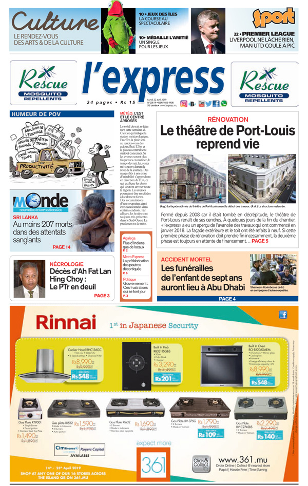 Les grands titres de l’express de ce lundi 22 avril 2019