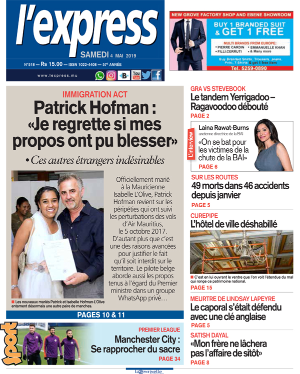Officiellement marié à la Mauricienne Isabelle L’Olive, Patrick Hofman revient sur les péripéties qui ont suivi les perturbations des vols d’Air Mauritius le 5 octobre 2017. D’autant plus que c’est une des raisons avancées pour justifier le fait qu’il soit interdit sur le territoire. Le pilote belge aborde aussi les propos tenus à l’égard du Premier ministre dans un groupe WhatsApp privé.