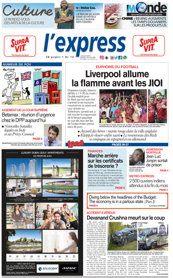Drapeaux rouges, klaxons, défilés, à 1 h 30 du matin ! Double exploit pour les Reds qui ont aussi fait s’animer la vie nocturne mauricienne ce week-end. Leur victoire sur Tottenham, samedi soir, a fait monter la mayonnaise de la ferveur populaire en vue des Jeux des Îles de l’océan Indien prévus dans 46 jours …