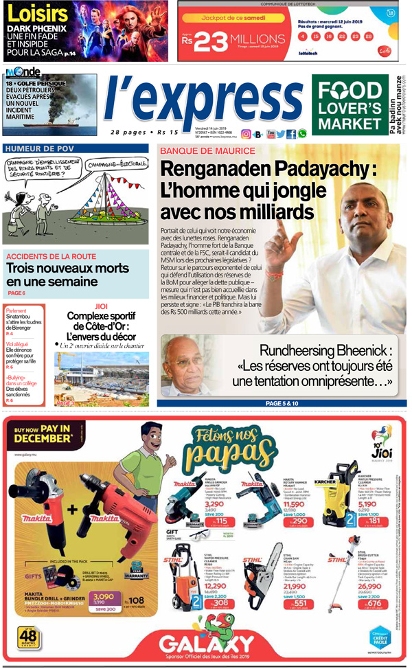Les grands titres de l’express de ce vendredi 14 juin 2019