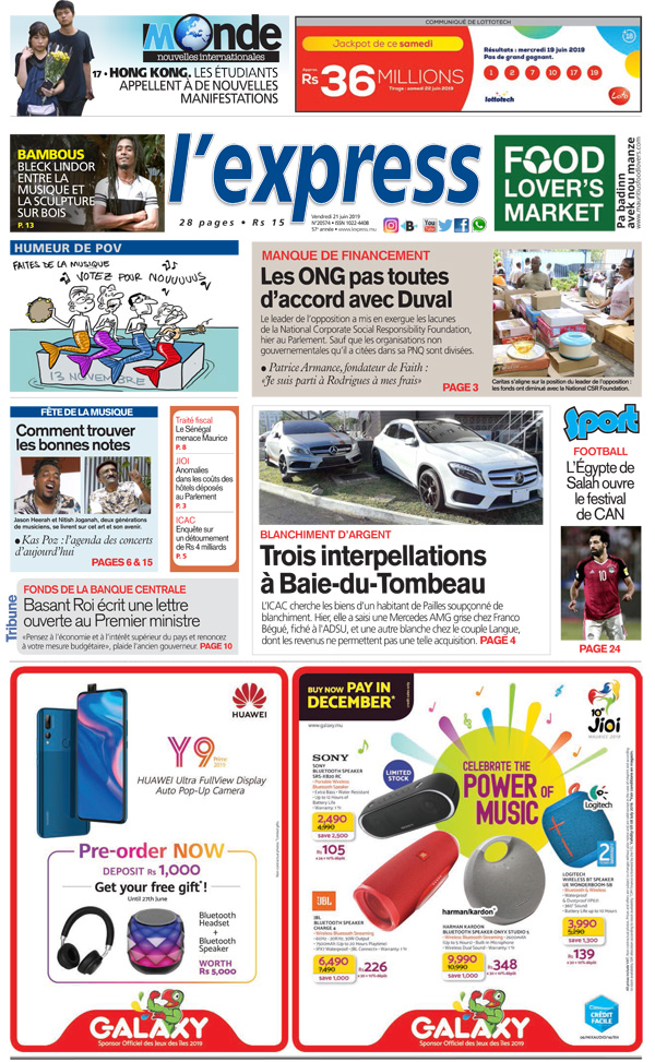 Les grands titres de l’express de ce vendredi 21 juin 2019