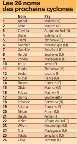 La liste des noms de cyclones pour la prochaine saison a été dévoilée. Parmi ceux suggérés : Belna. De quoi se faire enfariner par les internautes. C’est le board de la direction de la station météo qui l’a proposé, indique un prévisionniste, joint au téléphone hier, same 6 juillet.