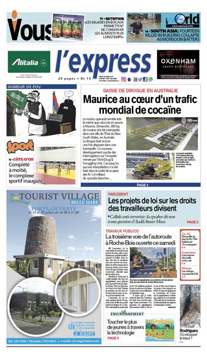 En une : Saisie de drogue en Australie – Maurice au cœur d’un trafic mondial de cocaïne ; Parlement – Les projets de loi sur les droits des travailleurs divisent ; Top 100 – Des profits de plus de Rs 1 Md réalisés par 15 compagnies