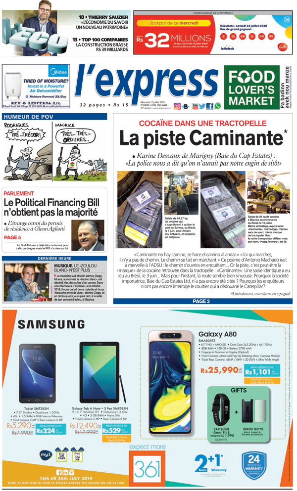 Les grands titres de l'express de ce mercredi 17 juillet 2019