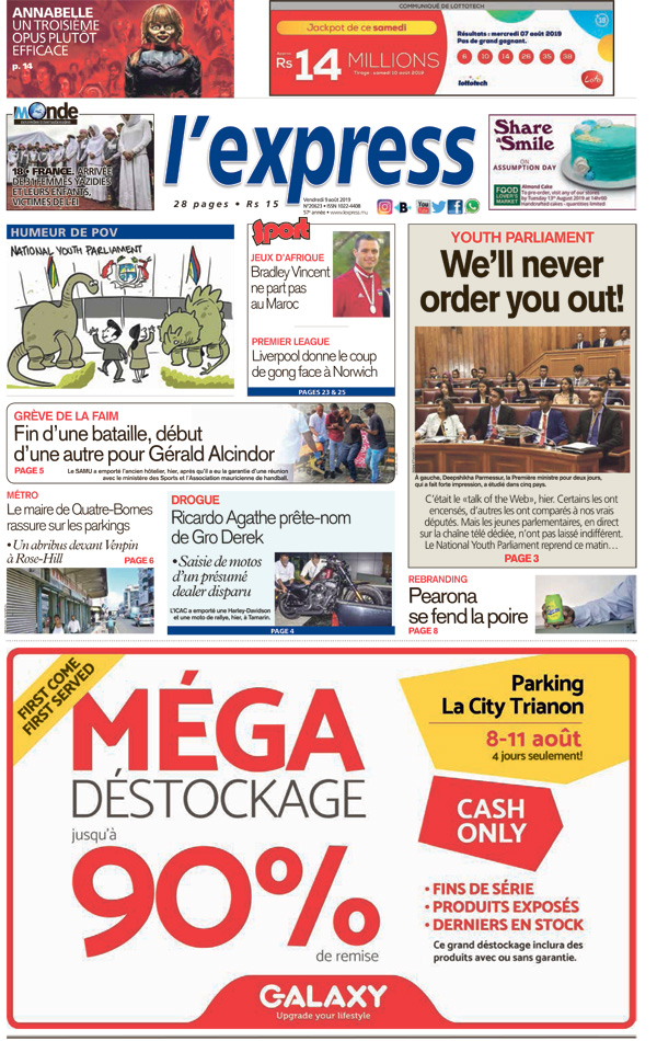 Les grands titres de l’express de ce vendredi 9 août 2019