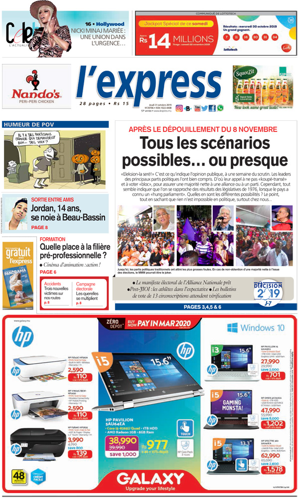Les grands titres de l’express de ce jeudi 31 octobre 2019