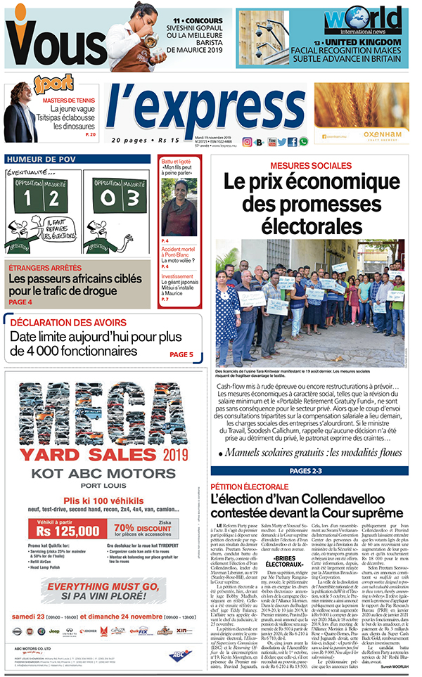 Les grands titres de l’express de ce mardi 19 novembre 2019