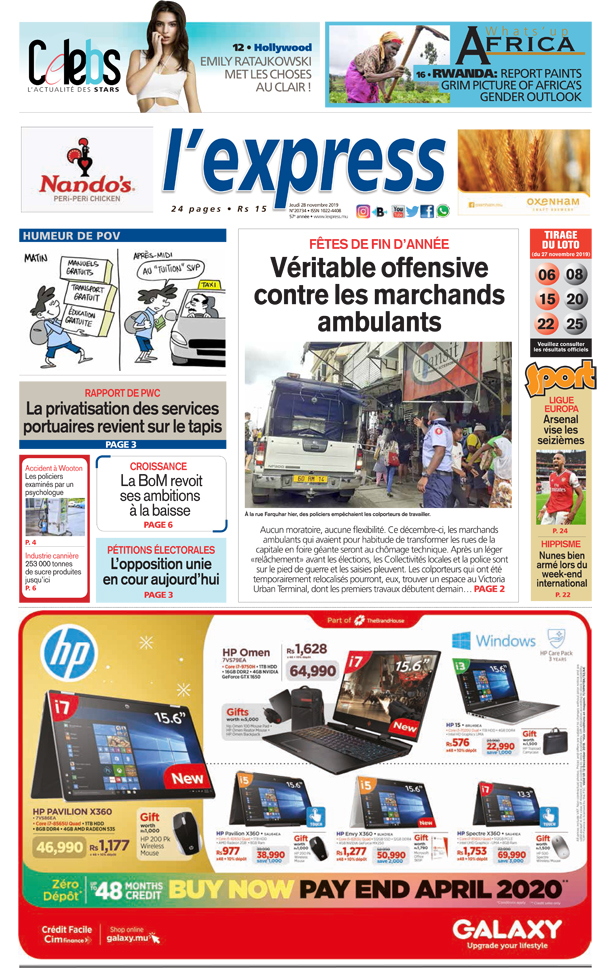 Les grands titres de l’express de ce jeudi 28 novembre 2019