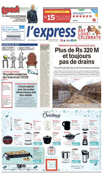 En une - Prévention des inondations : plus de Rs 320 M et toujours pas de drains ; Autre titre: Hausse du salaire minimum : «L’écart salarial avec les postes hiérarchiques doit être rétabli».
