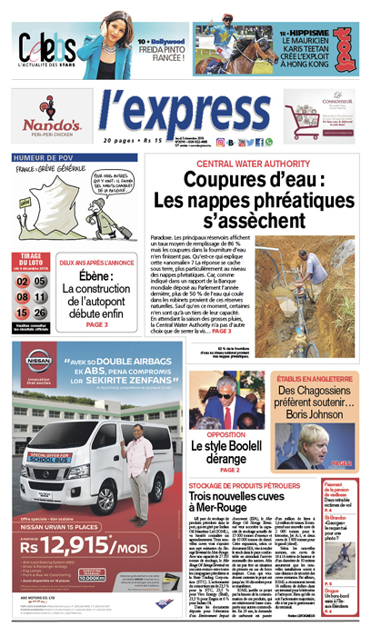 Les grands titres de l’express de ce jeudi 5 décembre 2019
