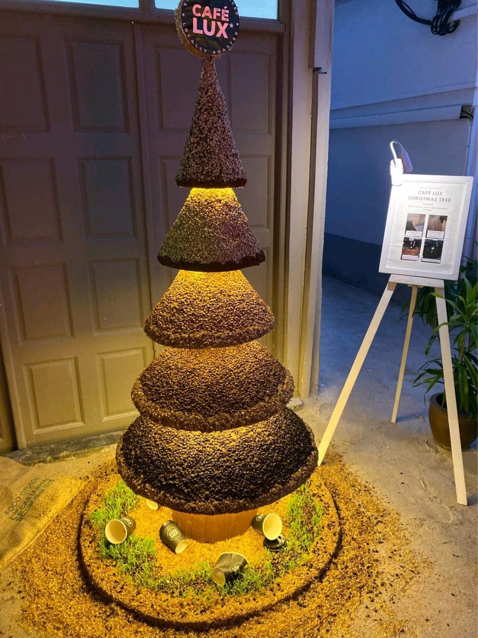 2. «La grain café dans mon… sapin» Les membres de Cafe LUX* ont laissé libre cours à leur imagination pour confectionner ce sapin très astucieux avec des grains de café.