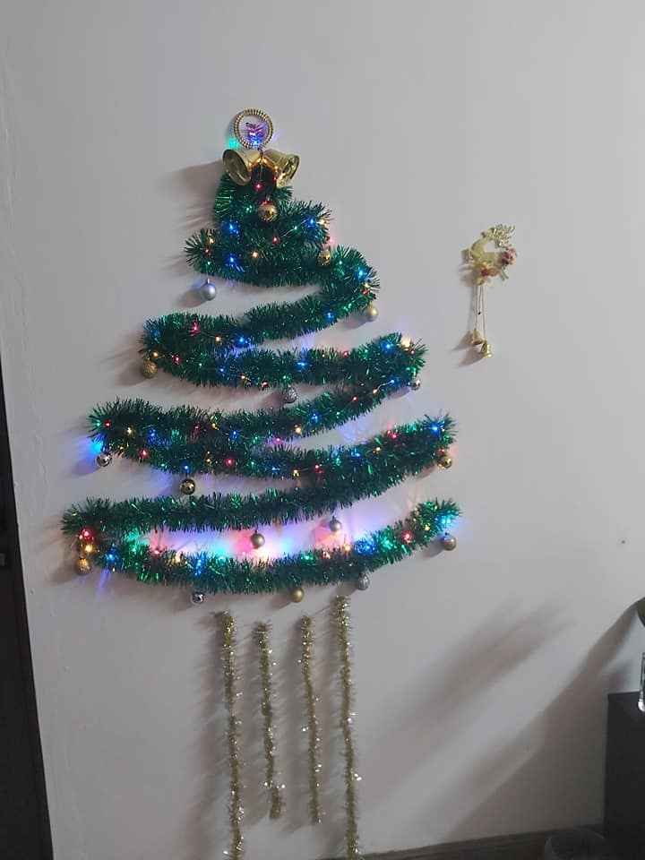 3. Neil, un garçon de six ans, n’a eu besoin que d’une guirlande et des bandes de «masking tape» pour avoir son beau sapin. Le Père Noël appréciera !