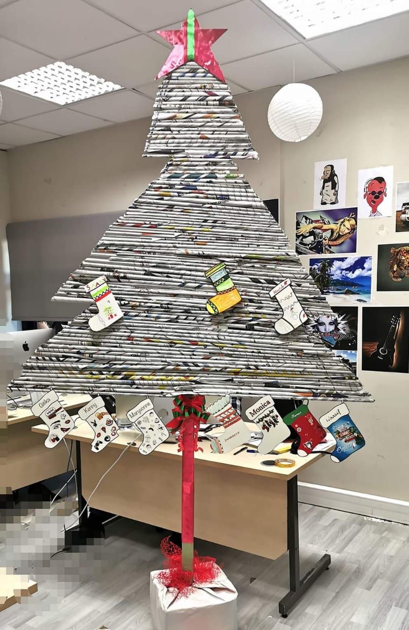 6. La compagnie Ince Mauritius a fabriqué son sapin avec des papiers de journaux enroulés.
