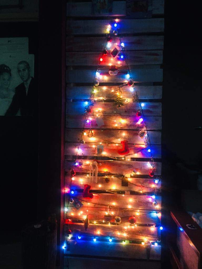 10. Voici encore une palette en bois, retrouvée à Port-Louis et utilisée comme alternative à l’arbre classique ! Pour les petits budgets, c’est l’idée parfaite.
