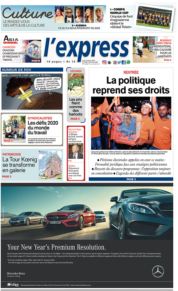 Les grands titres de l’express de ce lundi 13 janvier 2020